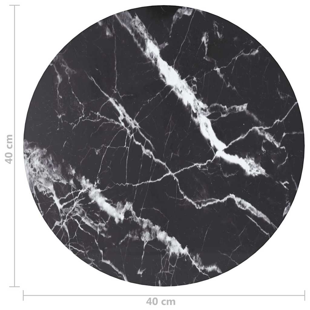 Blat masă negru Ø40×0,8 cm, sticlă securizată cu design marmură