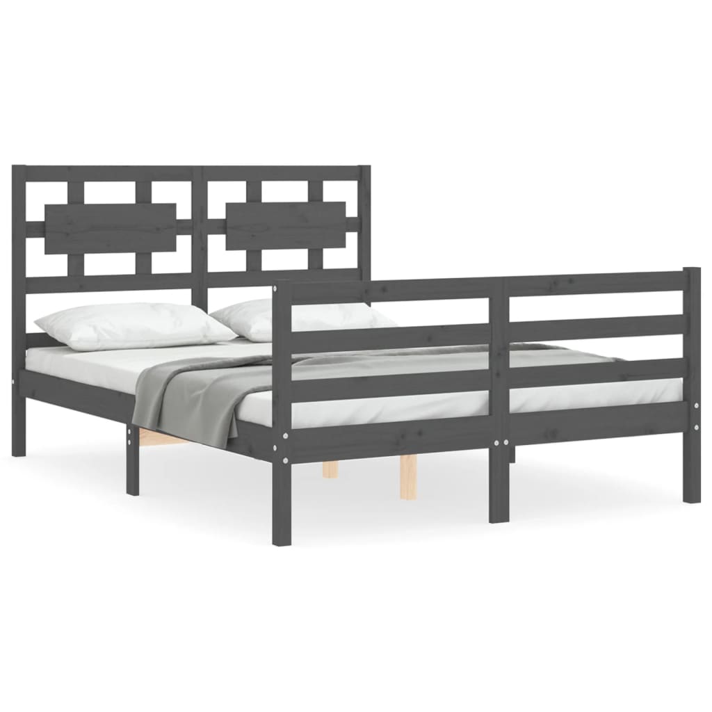 Cadru de pat cu tăblie, gri, 140×190 cm, lemn masiv
