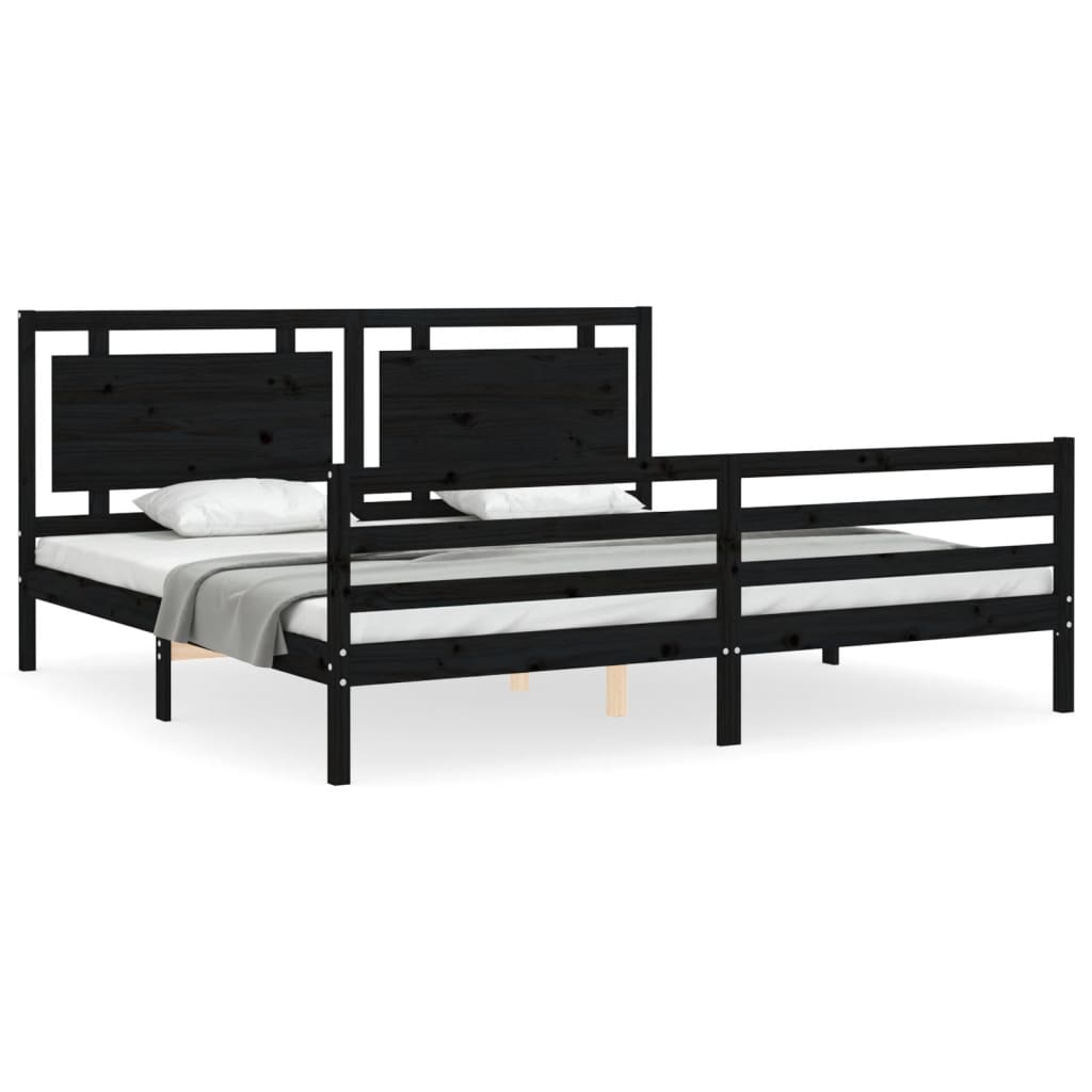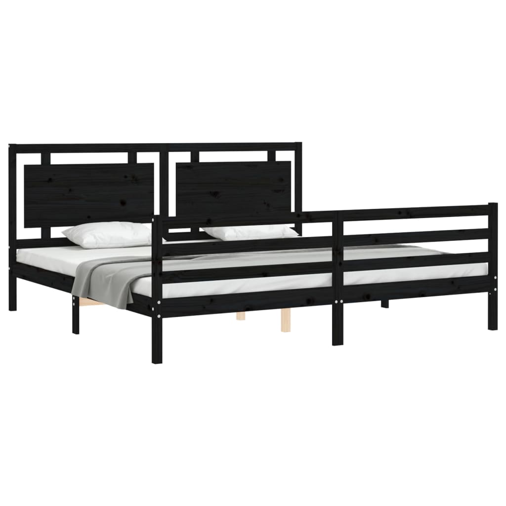 Cadru pat cu tăblie 200×200 cm, negru, lemn masiv