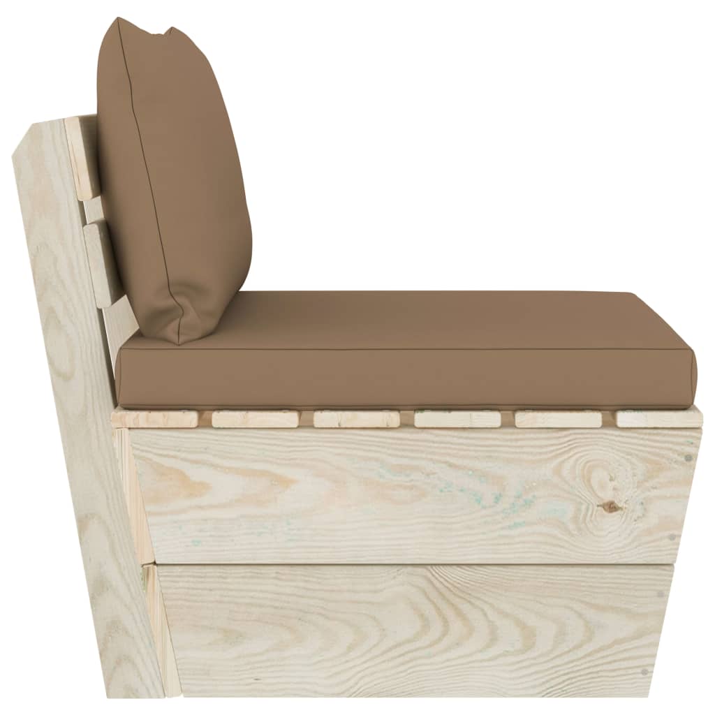 Canapea de grădină din paleți, de mijloc, cu perne, lemn molid
