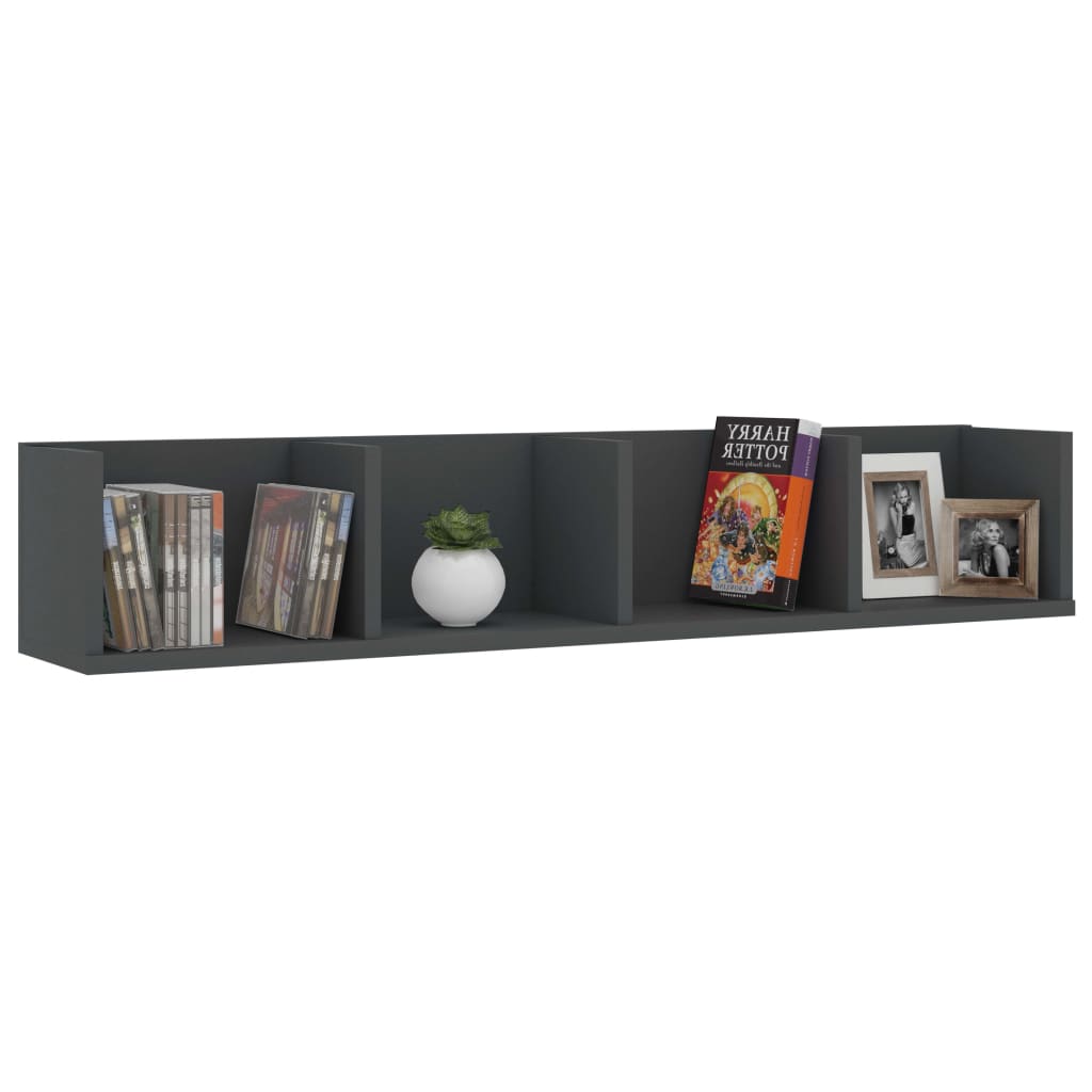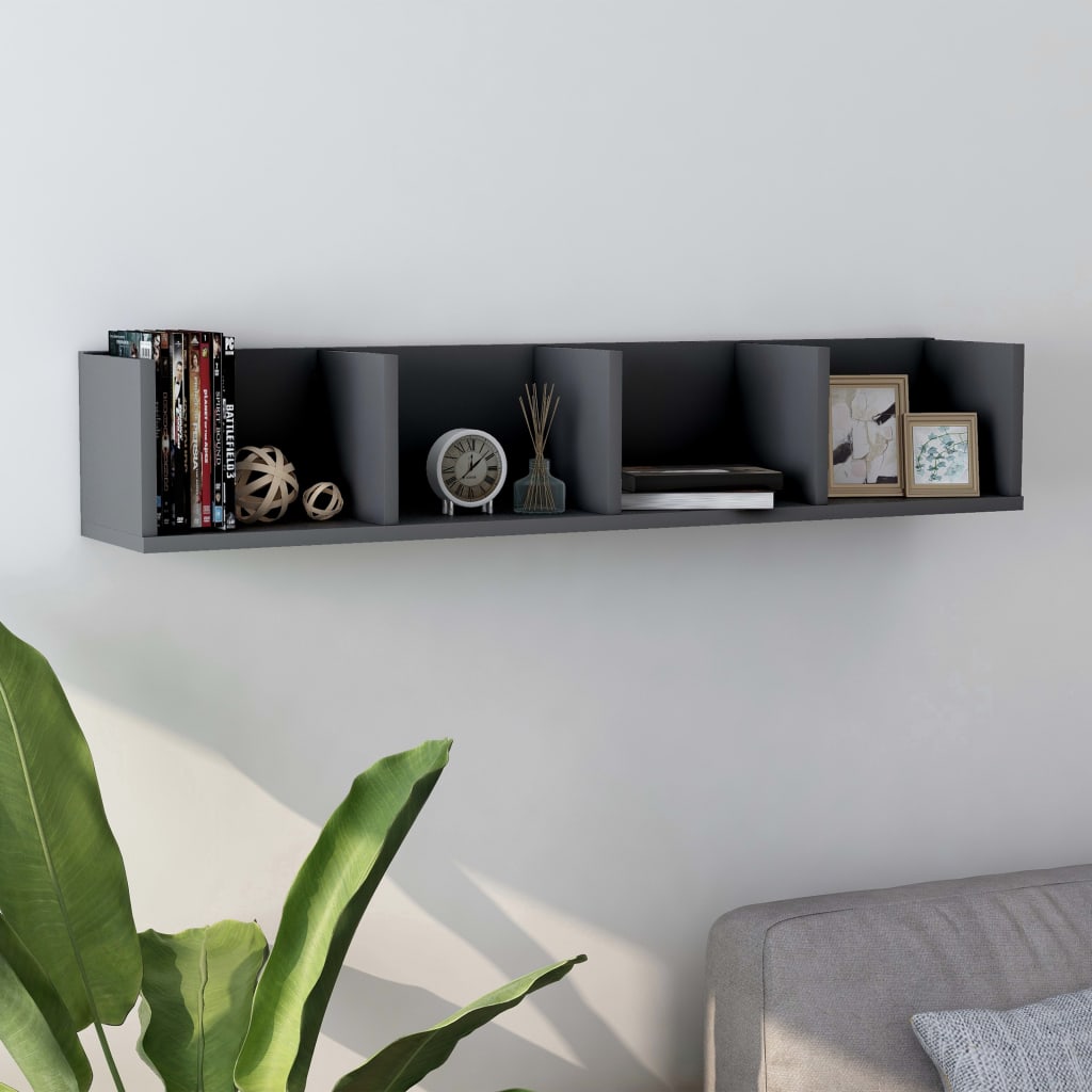 Raft de perete CD-uri, gri, 100 x 18 x 18 cm, lemn prelucrat
