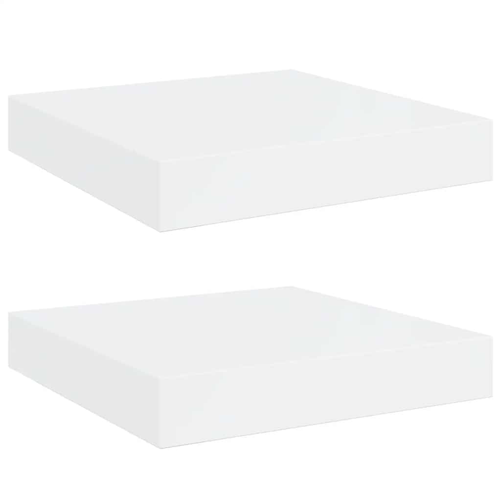 Rafturi de perete, 2 buc., alb extralucios, 23×23,5×3,8 cm, MDF