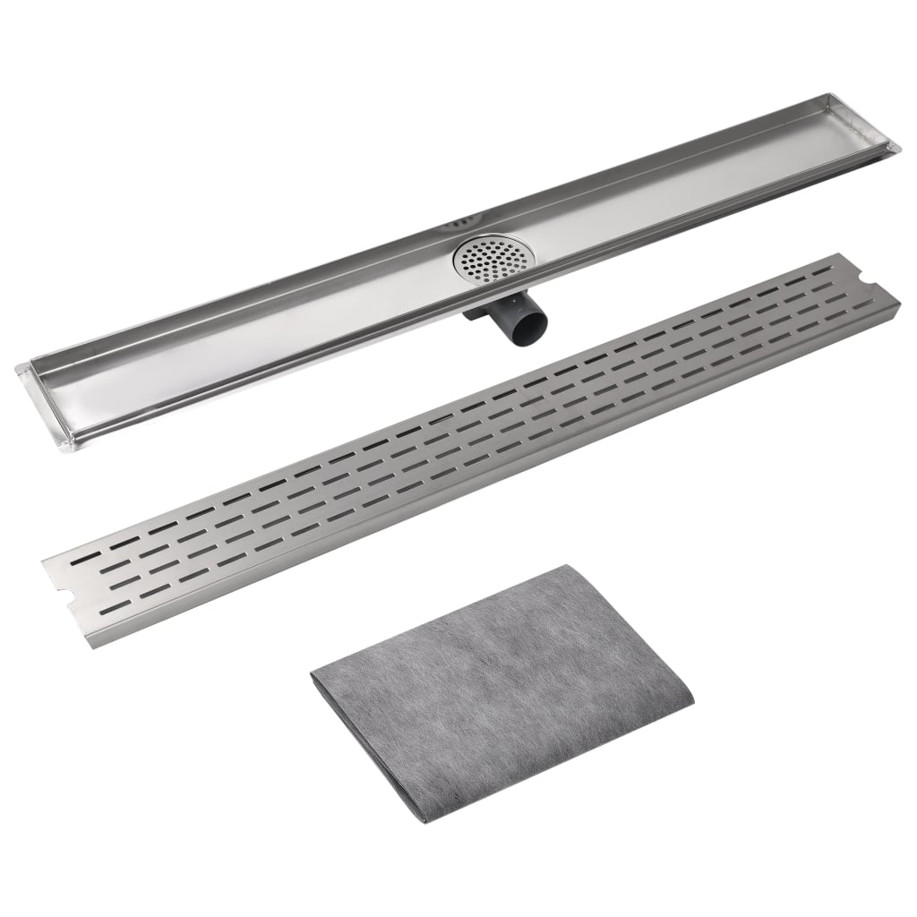 Această rigolă de duș, cu un design modern și elegant, va adăuga o notă de stil oricărei băi. Această rigolă liniară pentru duș, livrată împreună cu o cârpă impermeabilă, este ușor de curățat. Datorită capacității mari de scurgere de 40 L/min, această rigolă liniară pentru duș permite un drenaj continuu, chiar și cu un flux puternic de apă. Scurgerea liniară pentru duș, realizată din oțel inoxidabil robust, este proiectată pentru utilizare îndelungată. Livrarea include 1 rigolă liniară pentru duș și 1 cârpă impermeabilă.
