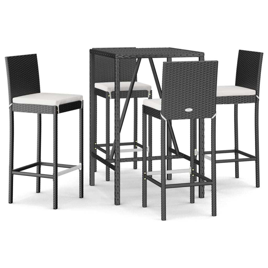 Set mobilier bar de grădină cu perne, 5 piese, negru, poliratan