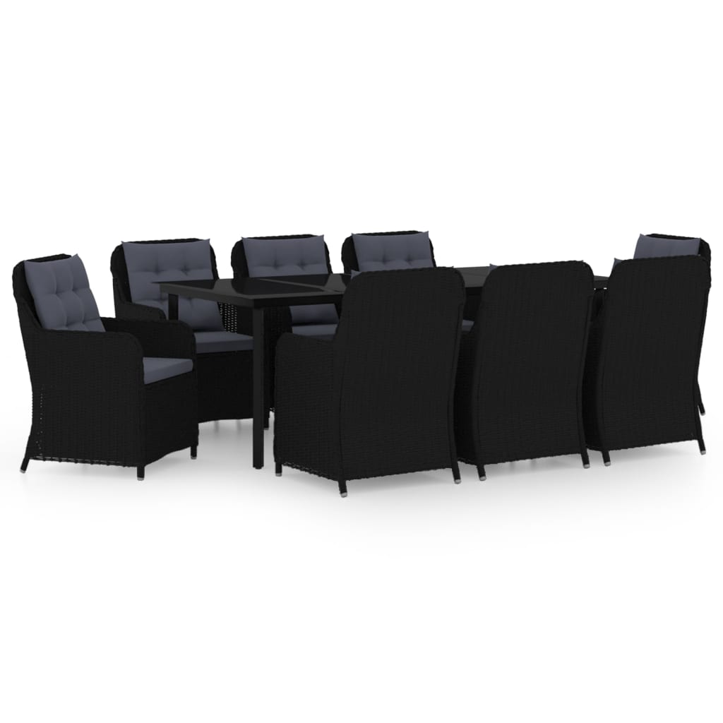 Set mobilier pentru grădină, 9 piese, negru